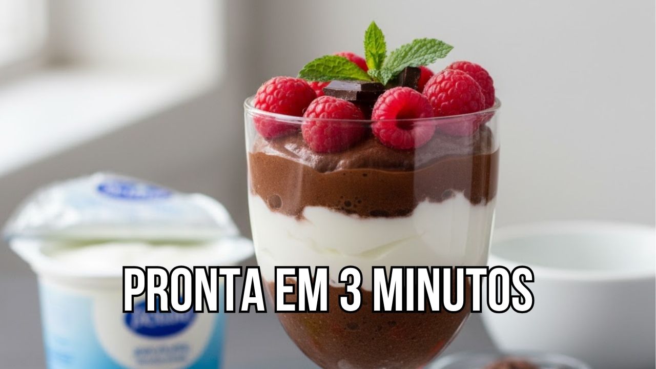 Uma mistura simples de chocolate com iogurte pode resultar em uma sobremesa cremosa, deliciosa e pronta em apenas 3 minutos.