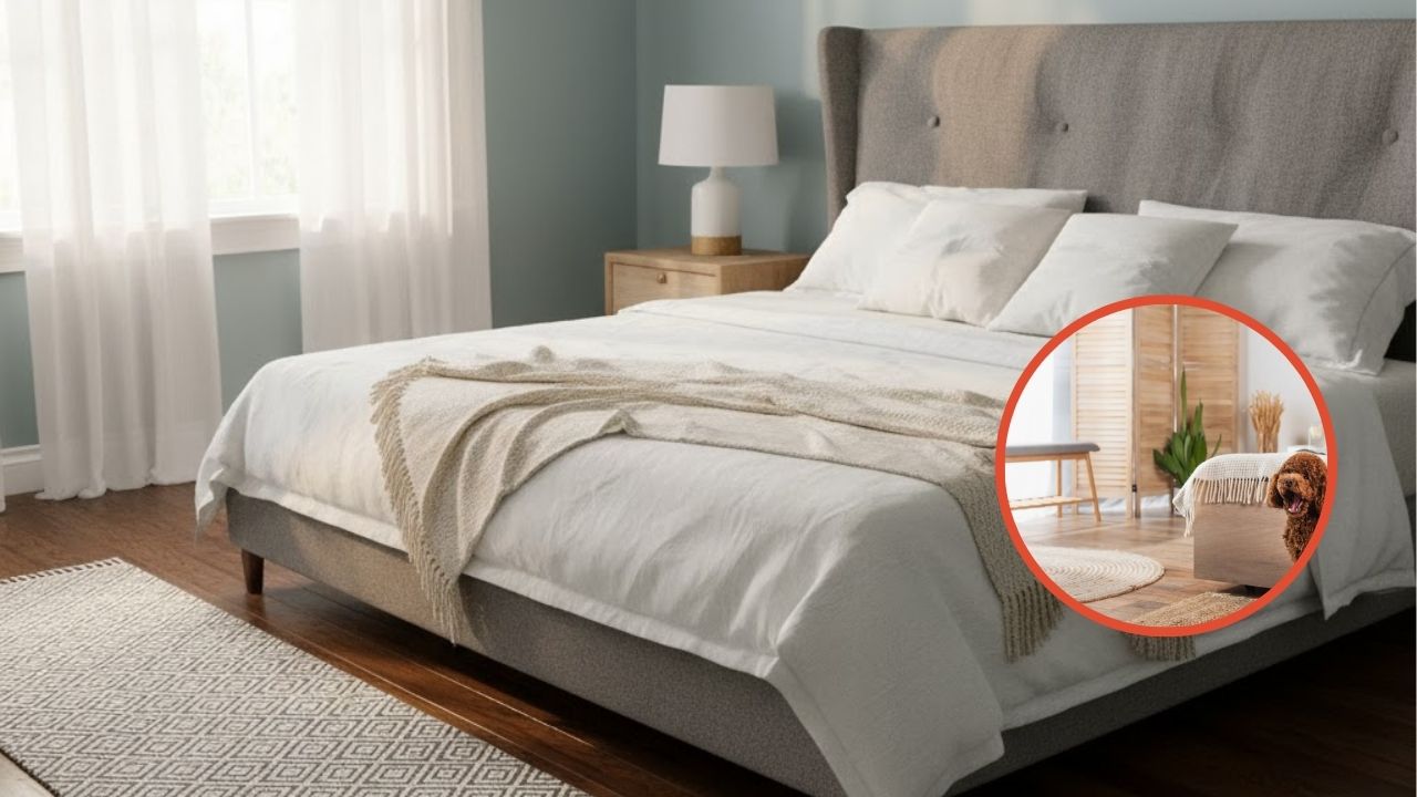 Quarto com tapetes que criam zonas de conforto ao acordar