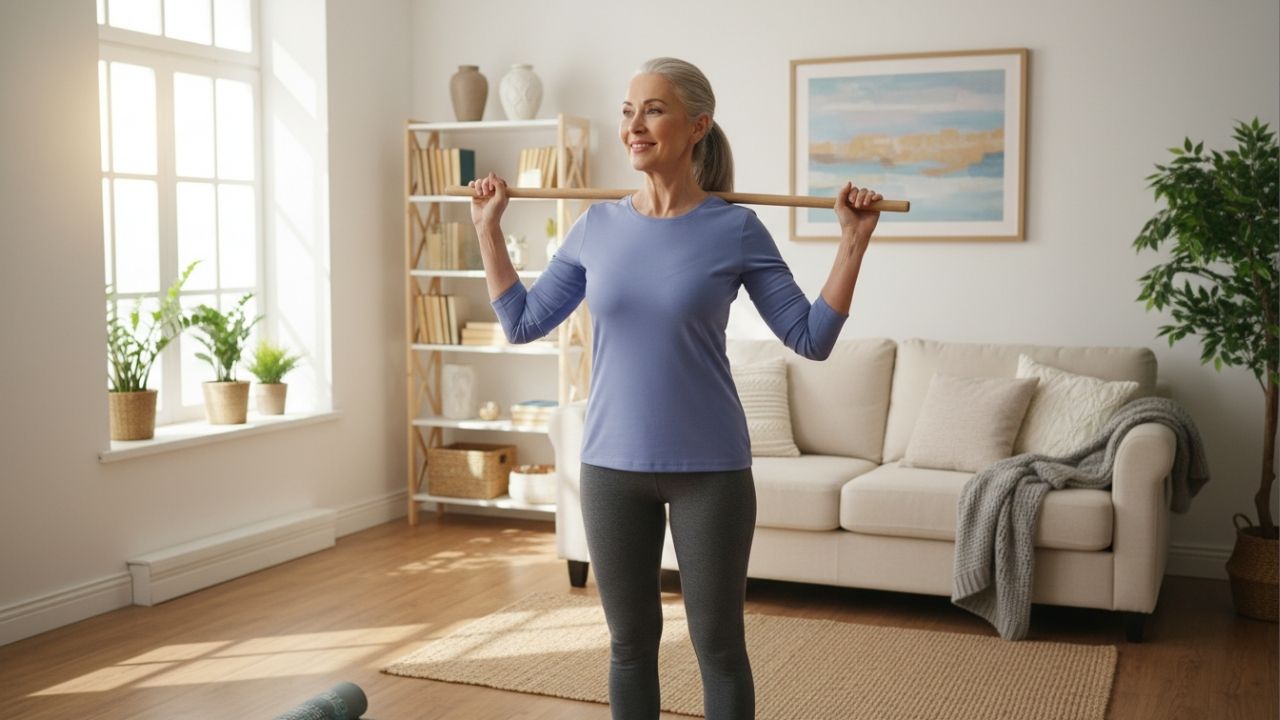 Exercícios com cabo de vassoura para mulheres acima dos 50 anos