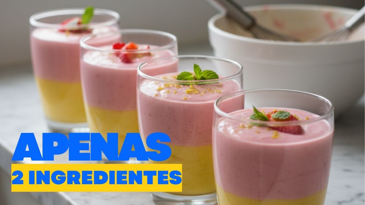 Esta sobremesa de dois ingredientes combina cremosidade, praticidade e um toque de frescor ideal para dias quentes. O preparo leva apenas alguns minutos e utiliza creme de leite gelado e sucos em pó.