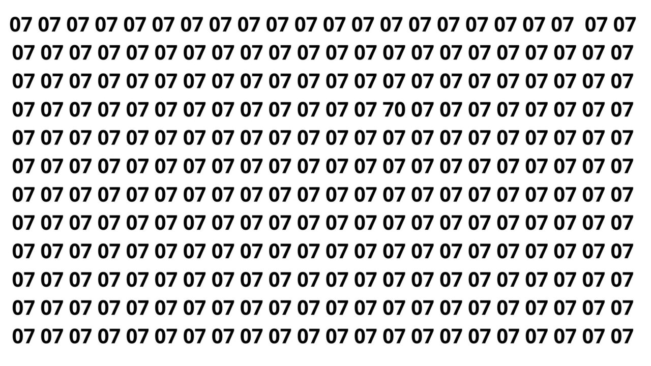 Se você conseguiu encontrar o número, considere-se parte de um seleto grupo que desafia as estatísticas de percepção. O número escondido era, na verdade, 70! Encontra-se disfarçado em meio a vários 07, onde estava localizada na décima quarta coluna na quarta linha, um jogo inteligente que confunde rapidamente os olhos desatentos. O design similar é o que torna a identificação rápida e precisa tão desafiadora.