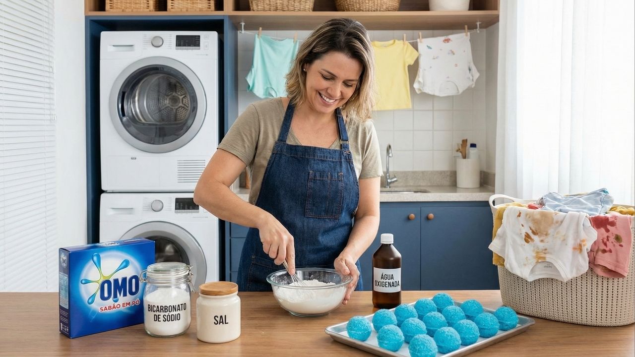 Muitas vezes, os produtos convencionais não resolvem completamente. A boa notícia é que com uma técnica simples, é possível obter resultados surpreendentes. Ao usar sabão em pó, bicarbonato de sódio, sal e água-oxigenada, você cria uma bomba caseira que age diretamente sobre as manchas, facilitando a remoção.