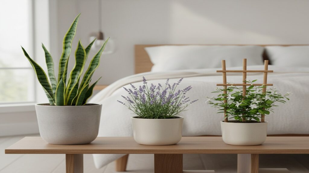 A lavanda é famosa pelo aroma relaxante. Em regiões de clima mais ameno e com boa luminosidade indireta, é possível cultivá-la em vaso perto de janelas. Onde isso não for viável, raminhos secos em um pote de vidro ou pequenos sachês no criado-mudo já trazem o cheiro característico, que muitas pessoas associam a calma e limpeza. O ideal é não exagerar: aroma suave funciona melhor do que cheiro muito forte. - Jasmim (espécies adaptadas a vaso)
