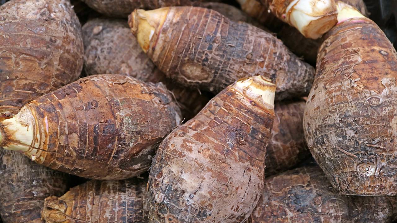 O inhame está pronto para ser colhido quando as folhas começam a murchar e secar, geralmente após 7-12 meses de cultivo, dependendo da variedade.