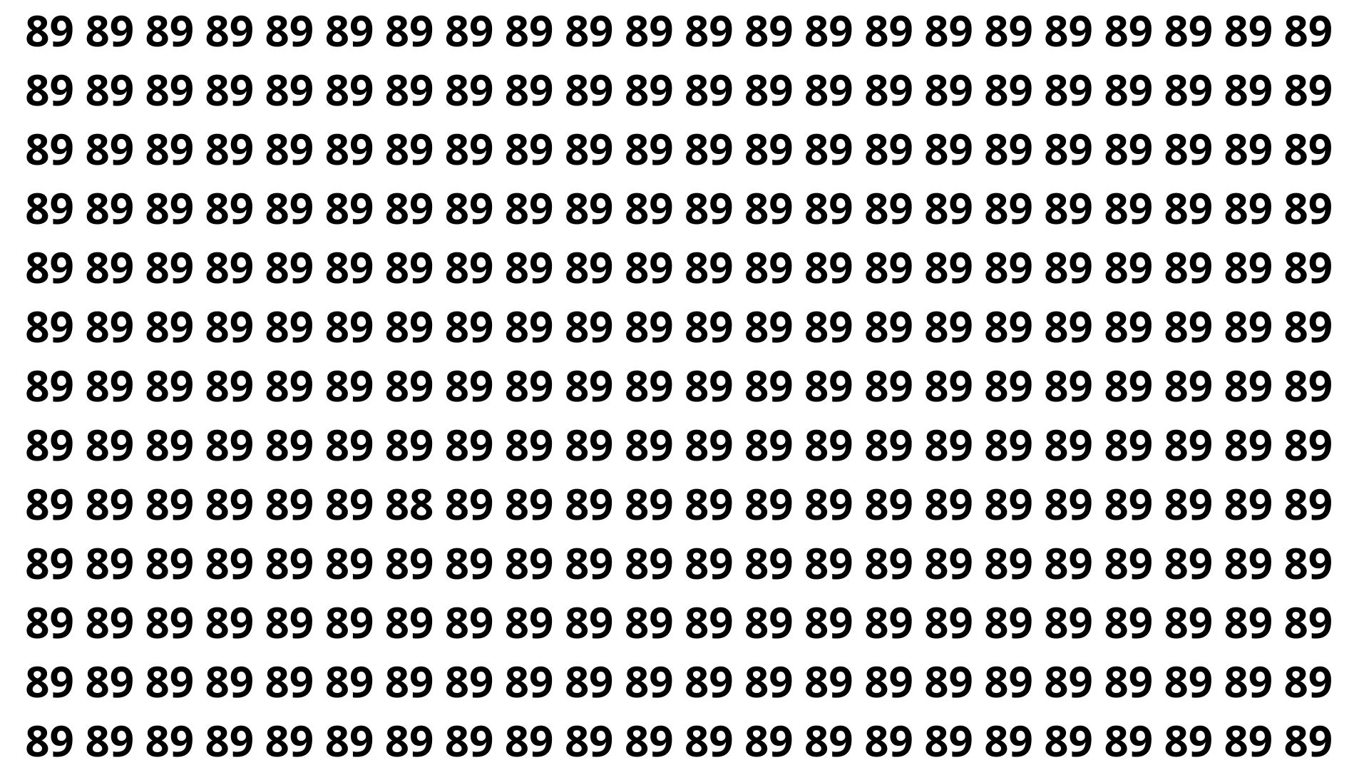 Encontre o número 88 escondido entre vários 89 em apenas 4 segundos