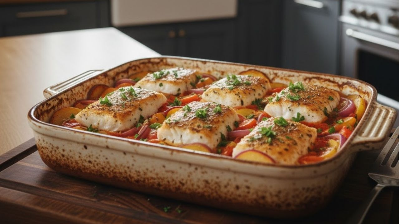 Peixe assado no fornocom vegetais e molho de tomate caseiro vai além de uma simples alternativa à fritura ou ao grelhado rápido. Trata-se de um método de cocção mais completo, que respeita a estrutura delicada do peixe e utiliza o calor de forma estratégica para preservar sabor, suculência e valor nutricional.