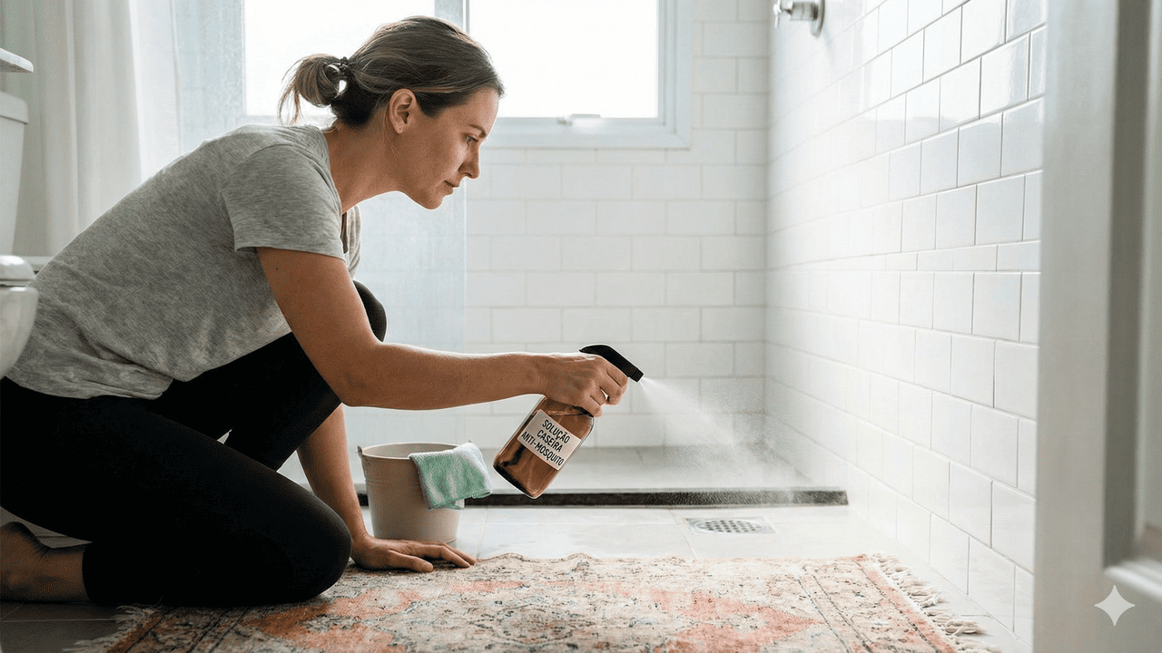Quando você aplica essa mistura detergente e álcool em ralos, vasos e áreas onde a água costuma acumular, ela cumpre duas funções ao mesmo tempo. Primeiro, limpa e solta a sujeira onde os ovos grudam; depois, quebra a película da água que ajuda as larvas a se movimentarem.