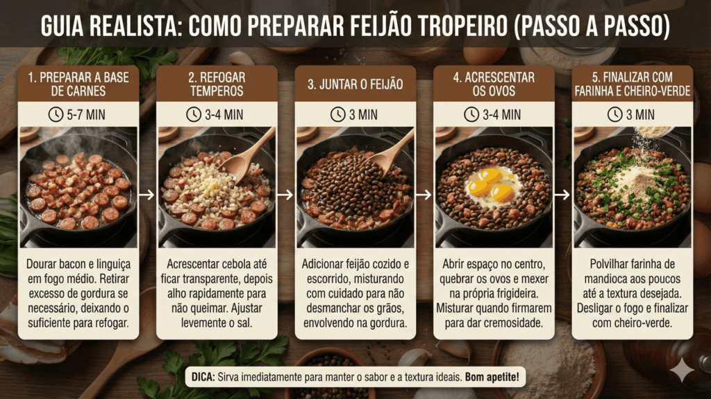 No fim das contas, o feijão tropeiro em 20 minutos mostra que dá sim para unir praticidade e sabor de comida caseira, sem precisar de técnicas difíceis ou equipamentos especiais. Com feijão já cozido, bons temperos e um pouco de organização, você prepara um prato completo, cheio de história e com aquele gostinho de tradição.