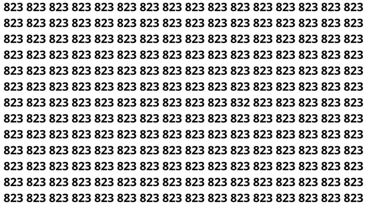 No desafio desta ilusão de ótica, o número diferente escondido em meio às sequências repetidas era o 832, camuflado entre várias ocorrências de 823. A inversão entre “2” e “3” faz com que o olhar passe direto sem perceber a mudança, e muita gente só enxerga o erro depois de saber a resposta.