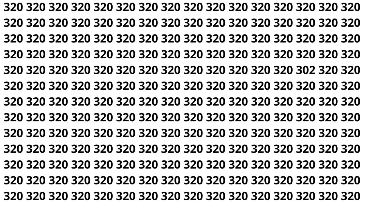 O desafio é direto: em uma imagem cheia de números 320, apenas um está diferente. A missão é localizar o número “intruso”, o 302, no menor tempo possível, de preferência em até 5 segundos, sem dar zoom logo de cara para não facilitar demais a brincadeira.