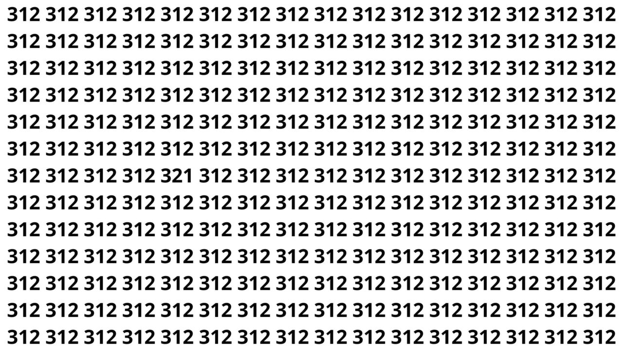 No enigma do “encontre o número 321 entre vários 312”, o segredo está na mudança sutil de padrão