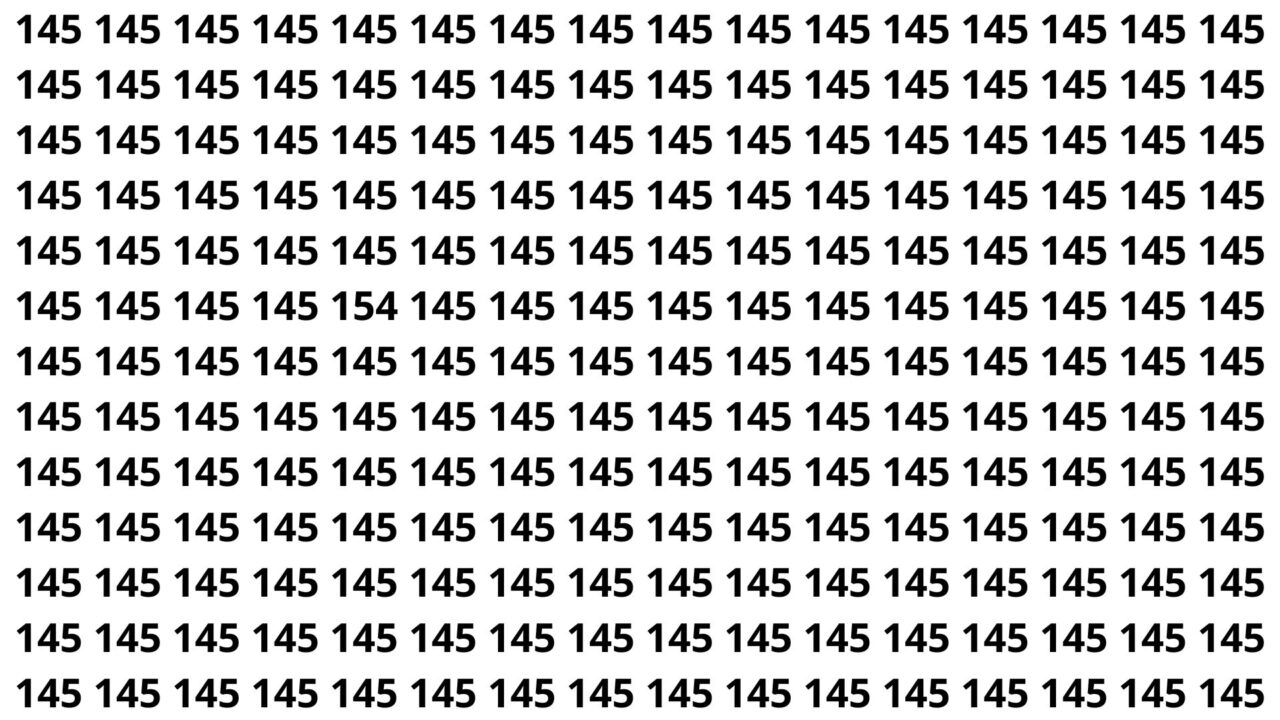 Neste desafio, a proposta é simples de entender e desafiadora de resolver rapidamente: há uma imagem repleta de números muito parecidos, com vários “145” espalhados por toda a tela. Em algum ponto, porém, está escondido o número que interessa: o enigmático 154, camuflado entre os demais e pronto para confundir o olhar.