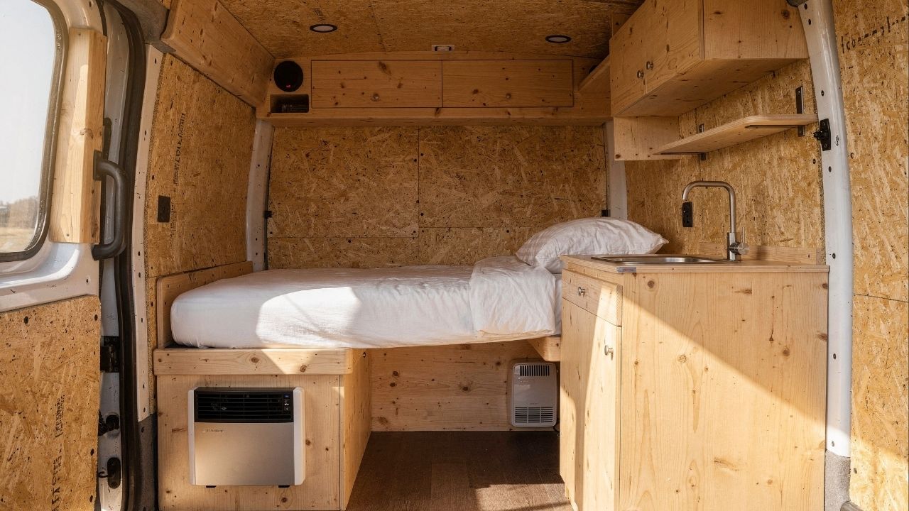 Além da praticidade, o interior modular é composto por placas leves de madeira isolada que se interconectam por guias laterais, permitindo reconfigurar o espaço interno de acordo com o uso: dormitório, cozinha ou área de trabalho.
