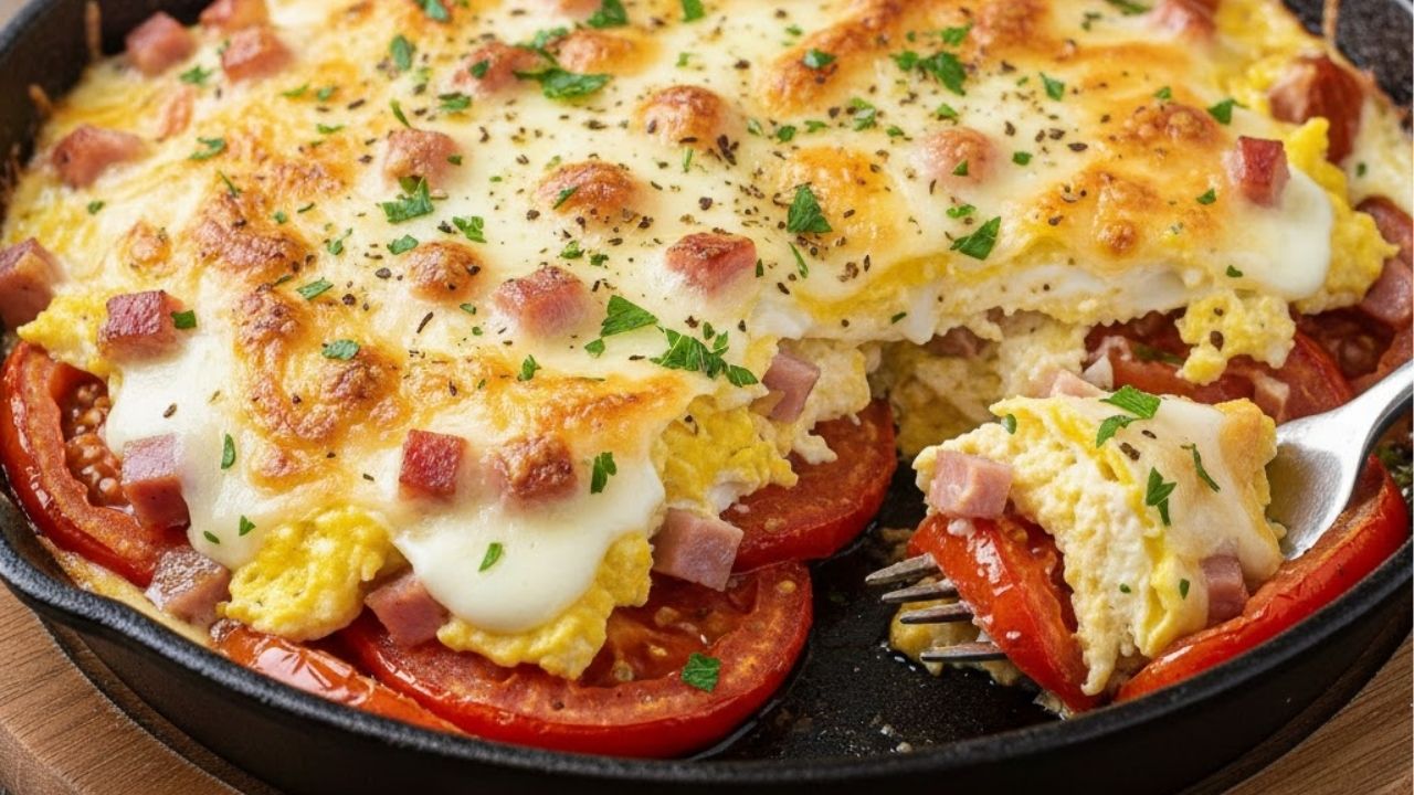 Ovos no tomate combinam acidez e cremosidade, com presunto, queijo e orégano, criando um prato equilibrado, saboroso e nutritivo, ideal para qualquer refeição.