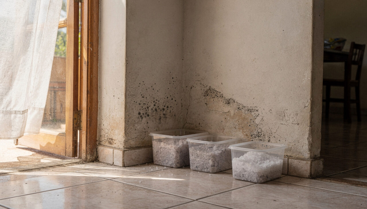🧂 Recipientes com sal grosso em cantos úmidos, trocando quando encharcar.