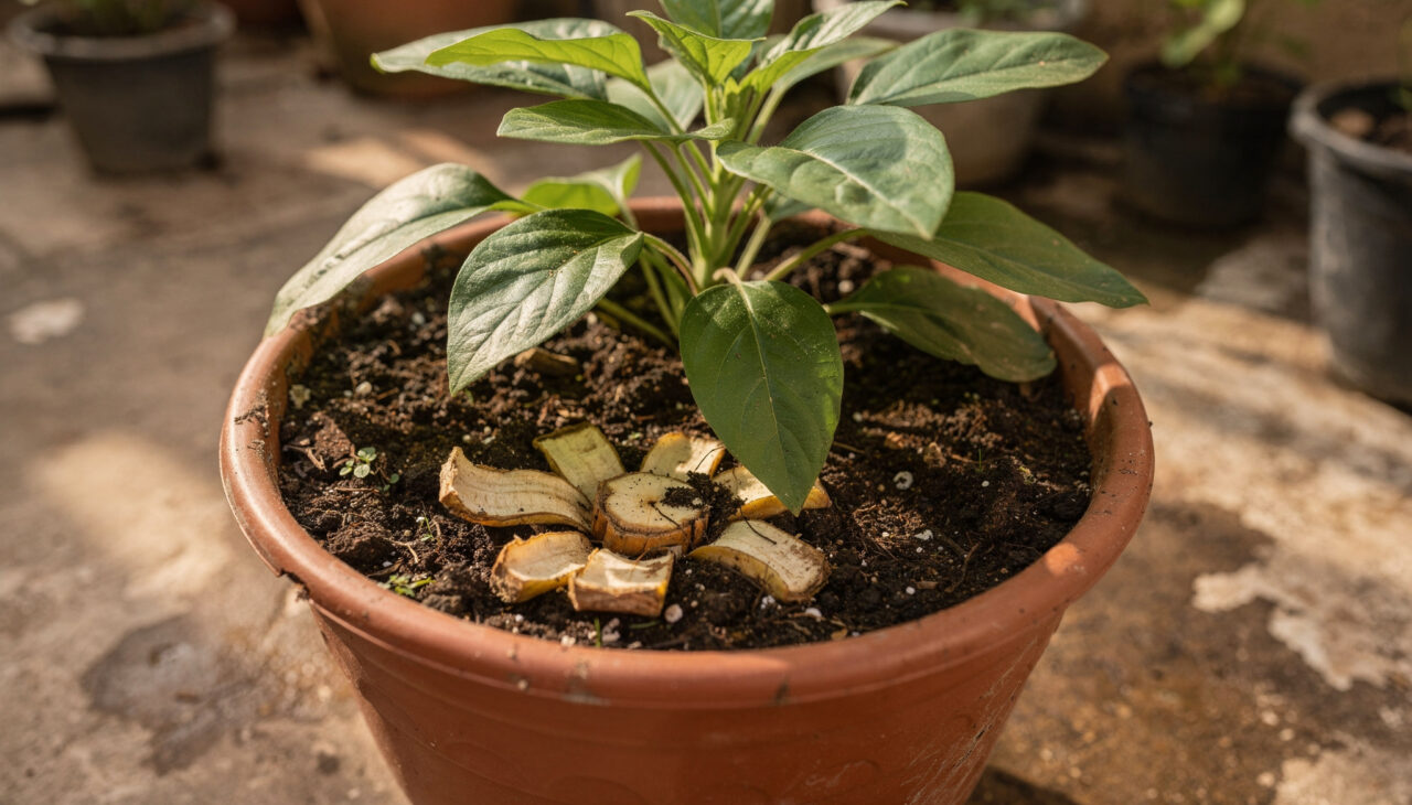 - Usar casca de banana apenas como complemento à adubação tradicional, nunca como única fonte de nutrientes.