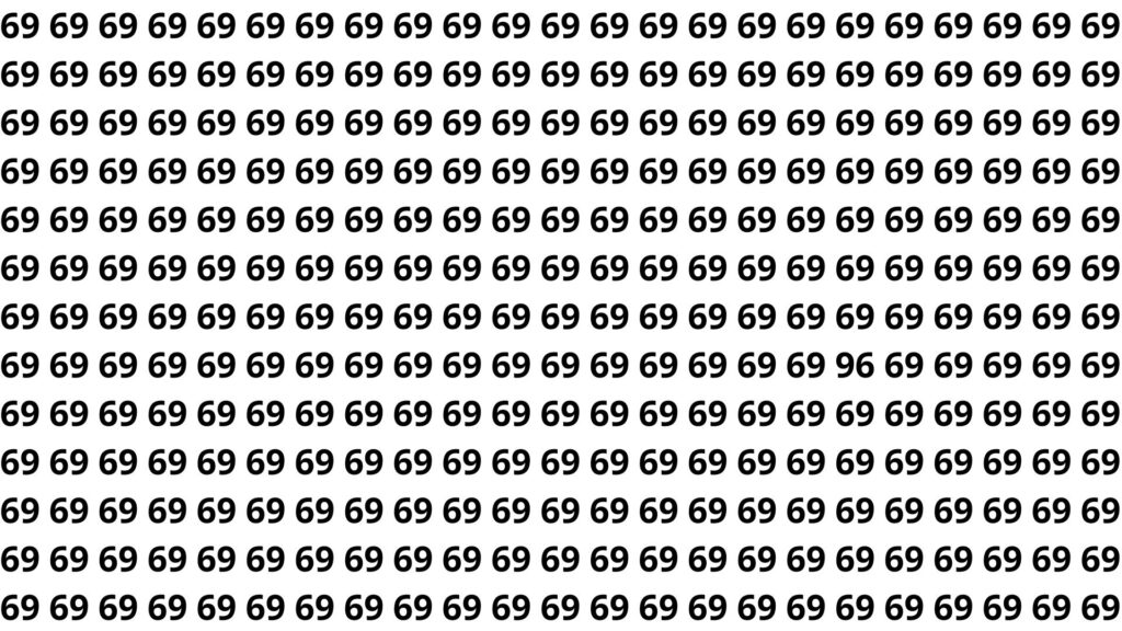 O desafio proposto gira em torno de uma grade cheia de pares de dígitos repetidos, onde o 69 aparece quase em todos os espaços. Em algum ponto dessa ilusão numérica, porém, há um número diferente, que quebra o padrão e exige atenção extrema para ser localizado em apenas 5 segundos, simulando testes rápidos de atenção usados em contextos educacionais.