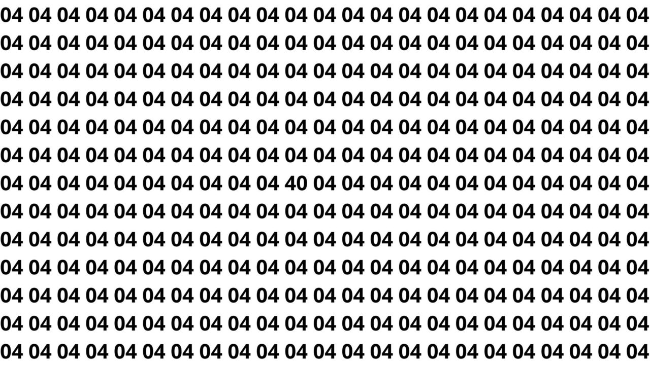 No desafio proposto, o número escondido na ilusão de ótica era o 40, camuflado entre dezenas de “04” organizados de forma repetitiva. Posicionado na região central da grade, ele aproveitava a semelhança visual entre as duas combinações, confundindo quem passava os olhos rapidamente pela imagem sem uma varredura sistemática.