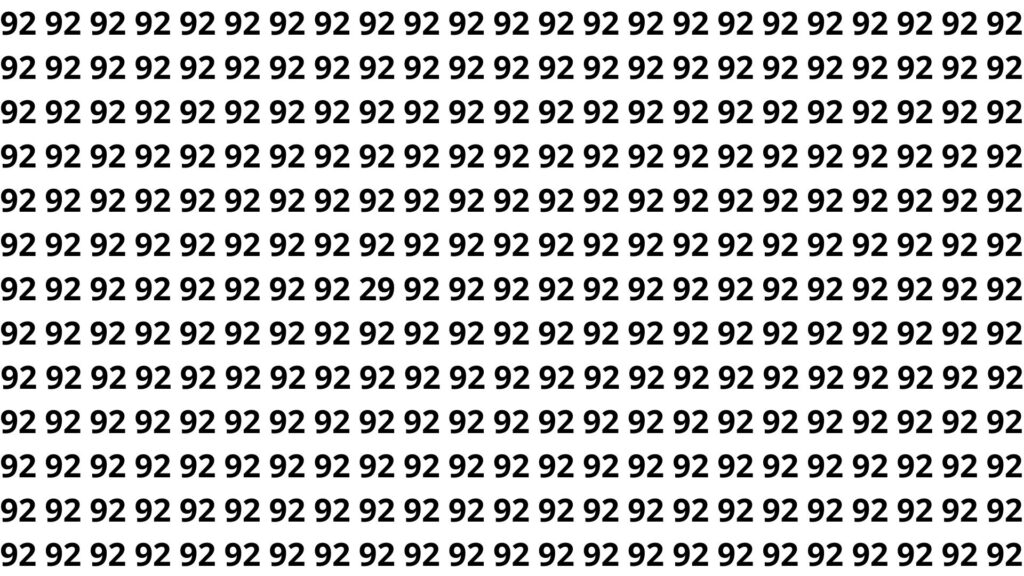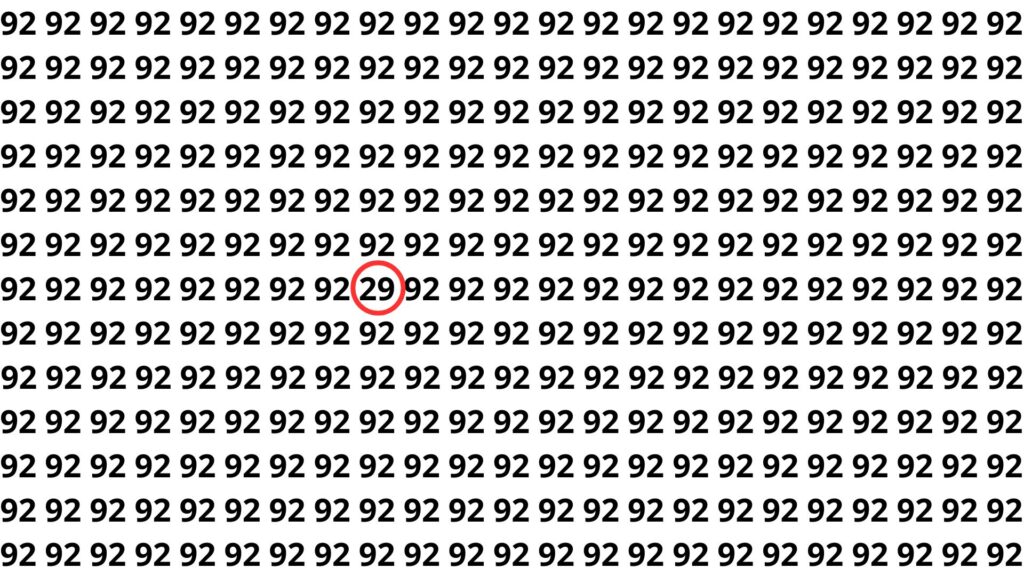 Neste puzzle específico, o número escondido na ilusão de ótica é o 29, cuidadosamente colocado entre diversos 92 para confundir o olhar apressado. Em muitos casos, ele aparece em uma posição onde o cérebro “espera” ver 92 e, por isso, ignora a inversão dos dígitos na primeira leitura.