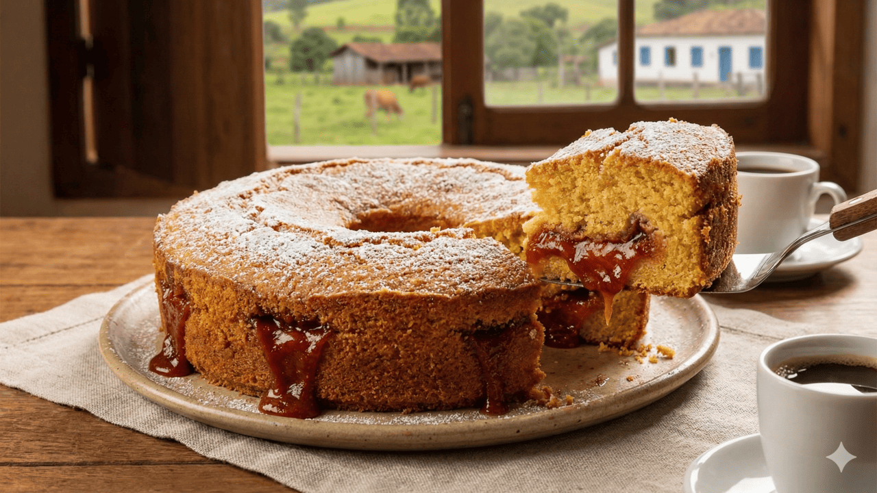 Imagine um fim de tarde chuvoso, aquele cheirinho de café passado na hora e, no centro da mesa, um bolo de fubá com goiabada cremosa roubando a cena. Esse bolo simples, com cara de casa de vó, é presença garantida em cafés da tarde, encontros em família e pequenas comemorações. Ele conquista pela combinação da textura delicada do fubá com o sabor marcante da goiabada, resultando em um doce úmido, acolhedor e cheio de memórias afetivas.