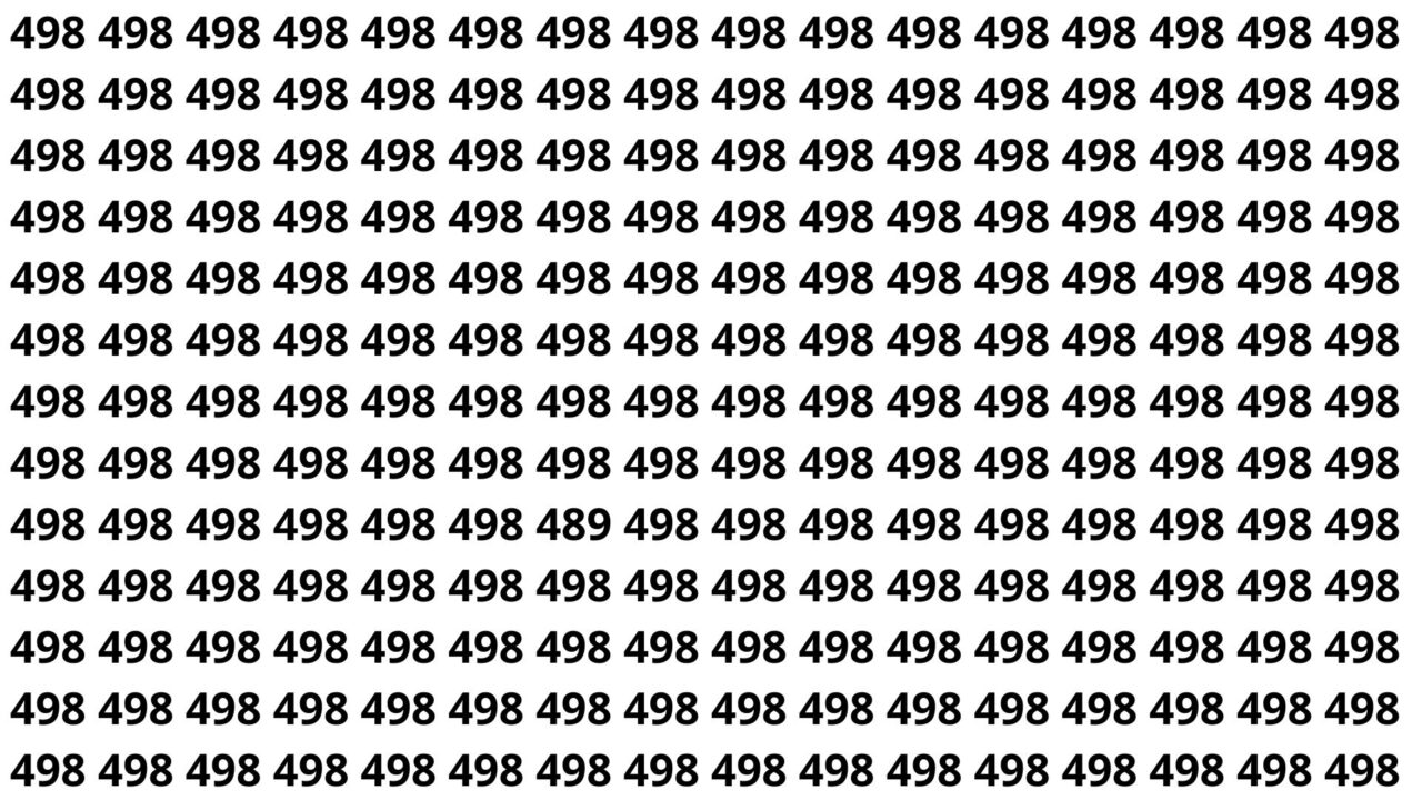 Neste desafio, a imagem está repleta do número 498 repetido em várias linhas e colunas, criando um padrão visual quase hipnótico. Em algum ponto, um número diferente se esconde entre eles, formando o enigma: “Encontre o número 489 entre vários 498” em apenas 5 segundos.
