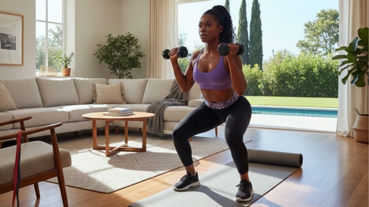 Exercícios domésticos fortalecem músculos, melhoram resistência cardiovascular e saúde mental. Treinos funcionais, aeróbicos e alimentação balanceada mantêm corpo ativo sem academia.