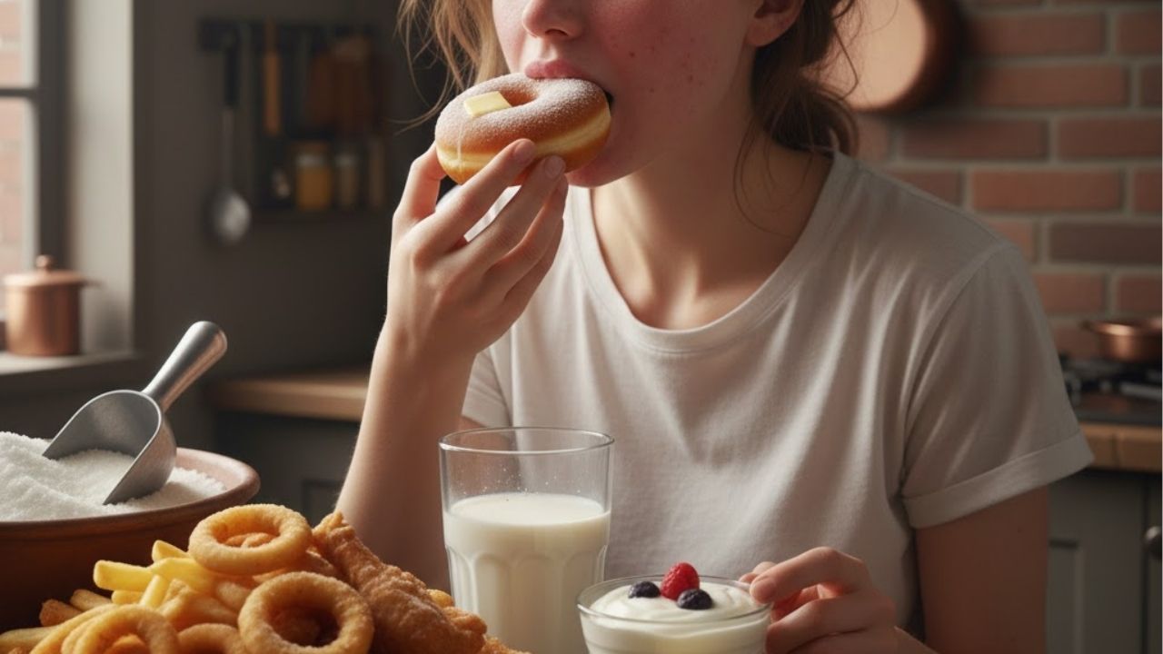 Evitar açúcares refinados, frituras e excesso de laticínios ajuda a reduzir inflamação, acne e envelhecimento precoce, promovendo pele saudável, firme e luminosa.