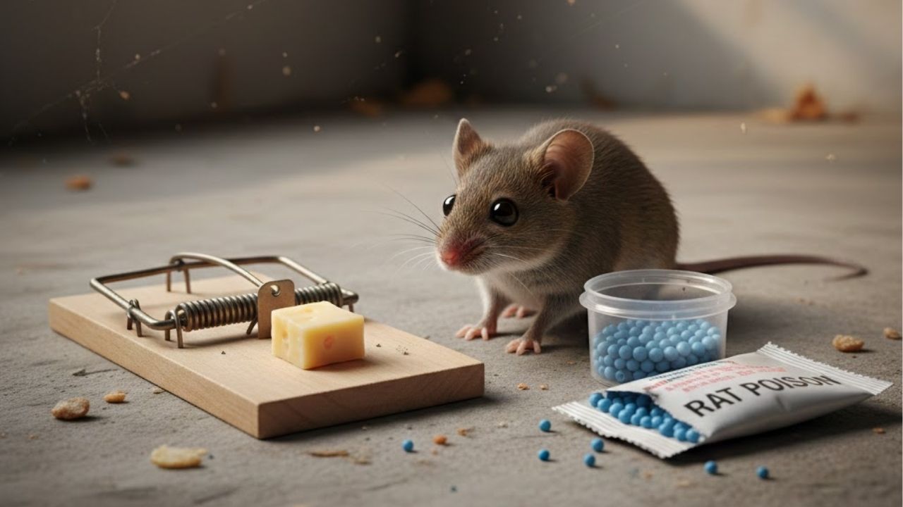 Veneno e ratoeira são respostas imediatistas que ignoram o funcionamento do ambiente doméstico como um sistema. Além do risco direto para crianças e animais domésticos, esses métodos podem causar contaminação do ar, odores persistentes e a morte do animal em locais ocultos.