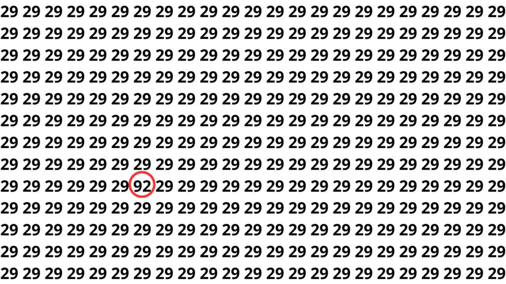 Para quem tentou seriamente encontrar o número 92 entre vários 29, a curiosidade sobre o resultado costuma aumentar a cada segundo. Na imagem proposta, o número escondido era exatamente o 92, posicionado de modo a se misturar com a sequência de 29 repetidos, aproveitando a troca de ordem dos dígitos para enganar o olhar.