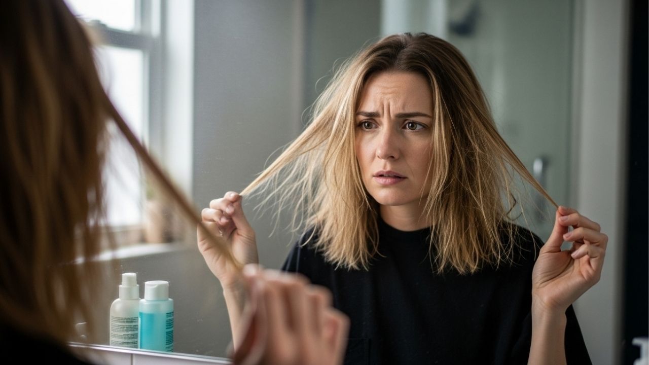 A quebra ocorre quando o córtex perde coesão interna, tornando o fio incapaz de suportar tração durante o pentear ou a lavagem. O calor solar acelera esse desgaste ao reduzir a elasticidade natural do cabelo e favorecer microfissuras ao longo do comprimento.