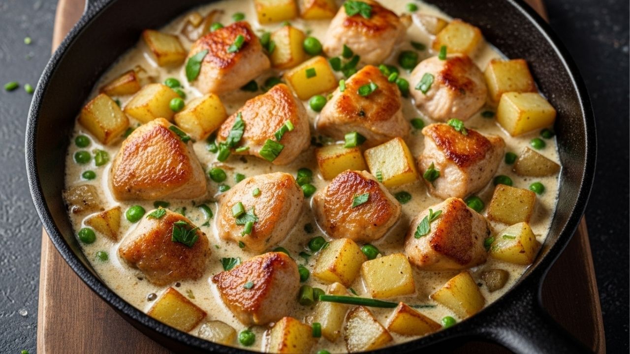 O frango cremoso com batatas na frigideira vai além de uma refeição rápida, pois reúne técnicas simples de cocção que maximizam sabor, textura e rendimento com poucos ingredientes.