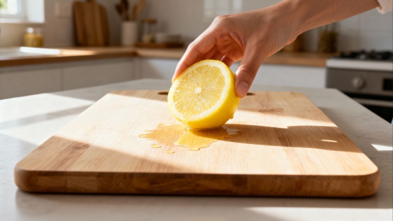 Ao aplicar limão na superfície da tábua, o ácido cítrico quebra as moléculas responsáveis pelos maus odores e desativa enzimas deixadas por alimentos como carne crua, alho e peixe.