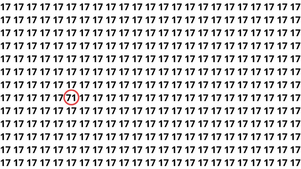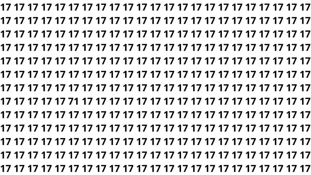 No desafio de encontrar o número 71 entre vários 17, o número escondido estava posicionado em uma das linhas centrais, levemente deslocado em relação ao alinhamento dos demais. Esse pequeno desvio, somado à inversão dos dígitos, fez com que muitos olhos passassem direto por ele.