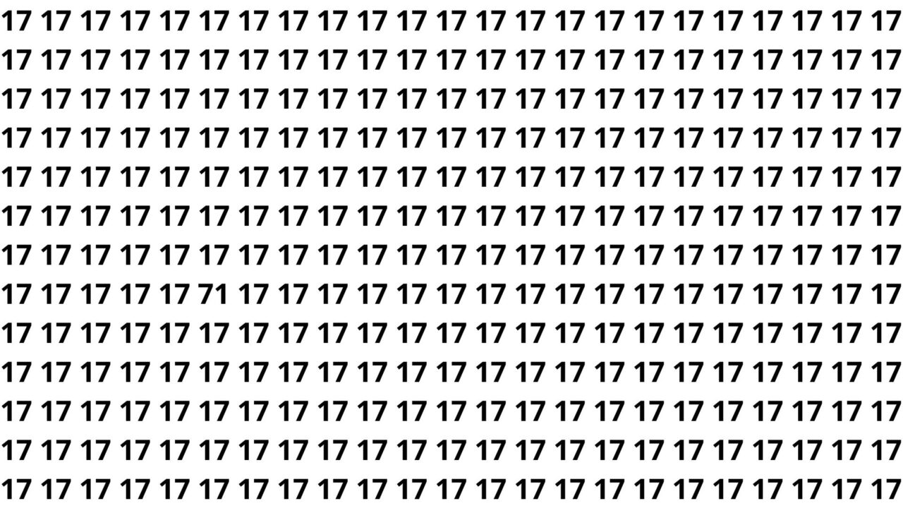 No desafio de encontrar o número 71 entre vários 17, o número escondido estava posicionado em uma das linhas centrais, levemente deslocado em relação ao alinhamento dos demais. Esse pequeno desvio, somado à inversão dos dígitos, fez com que muitos olhos passassem direto por ele.