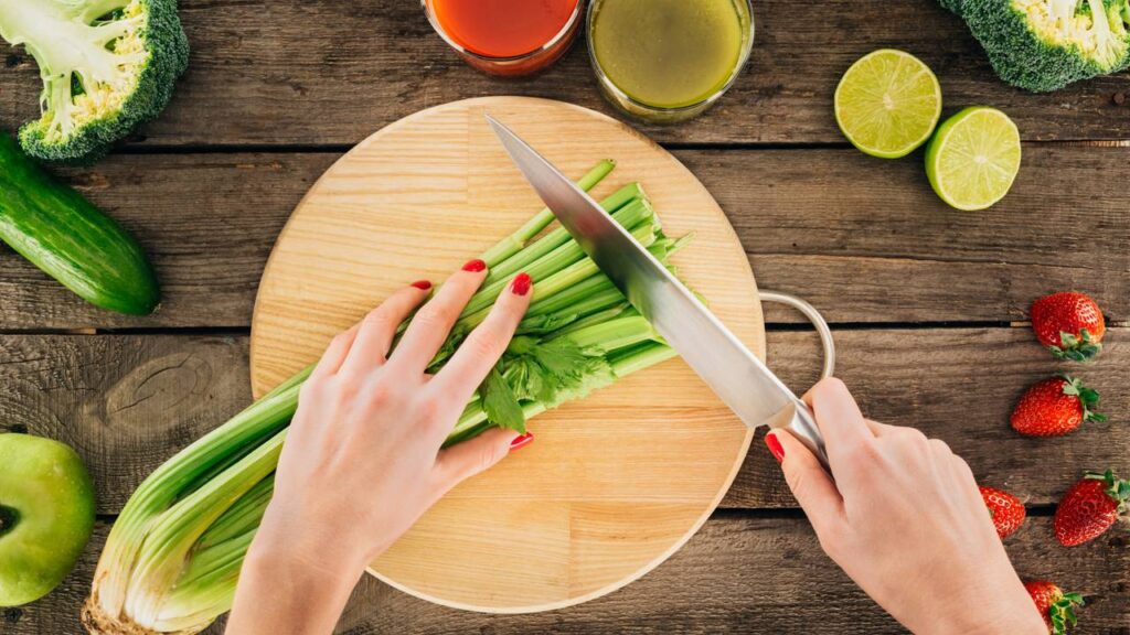- Sucos e batidas: aipo batido com água, maçã, limão ou gengibre, sem açúcar em excesso;