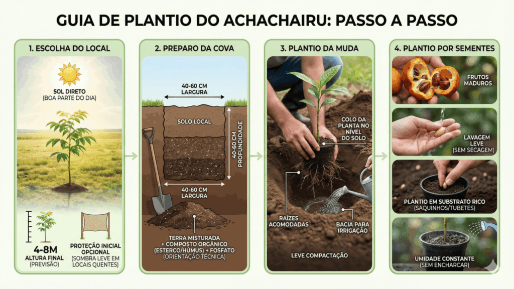 Ao tratar de como plantar achachairu, muitos iniciantes se perguntam por onde começar: semente ou muda enxertada