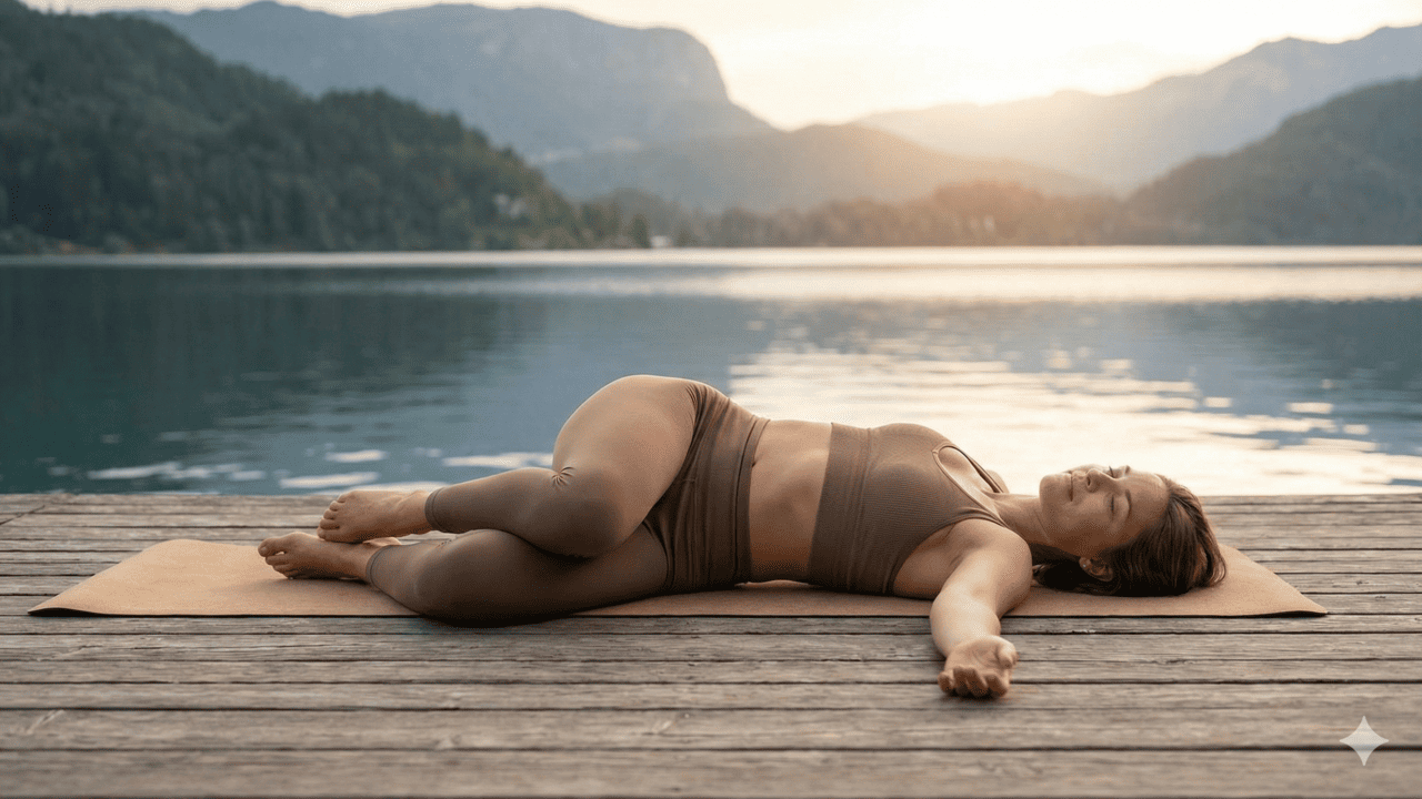 - Alongamento dos isquiotibiais: deitado, uma perna é elevada com o joelho levemente flexionado até sentir um alongamento leve na parte de trás da coxa, ajudando a reduzir a tensão na lombar.