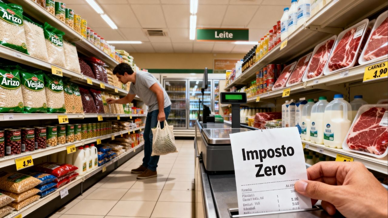 A isenção inclui proteínas animais, grãos, laticínios e hortifrúti, eliminando a cumulatividade dos antigos impostos (PIS, COFINS, ICMS) que eram embutidos no preço final. Esta eliminação será efetiva a partir de 2027, quando a cobrança dos novos impostos começar plenamente. Em 2026, os consumidores ainda não perceberão redução de preços, pois os novos tributos são cobrados de forma simbólica enquanto os antigos permanecem.