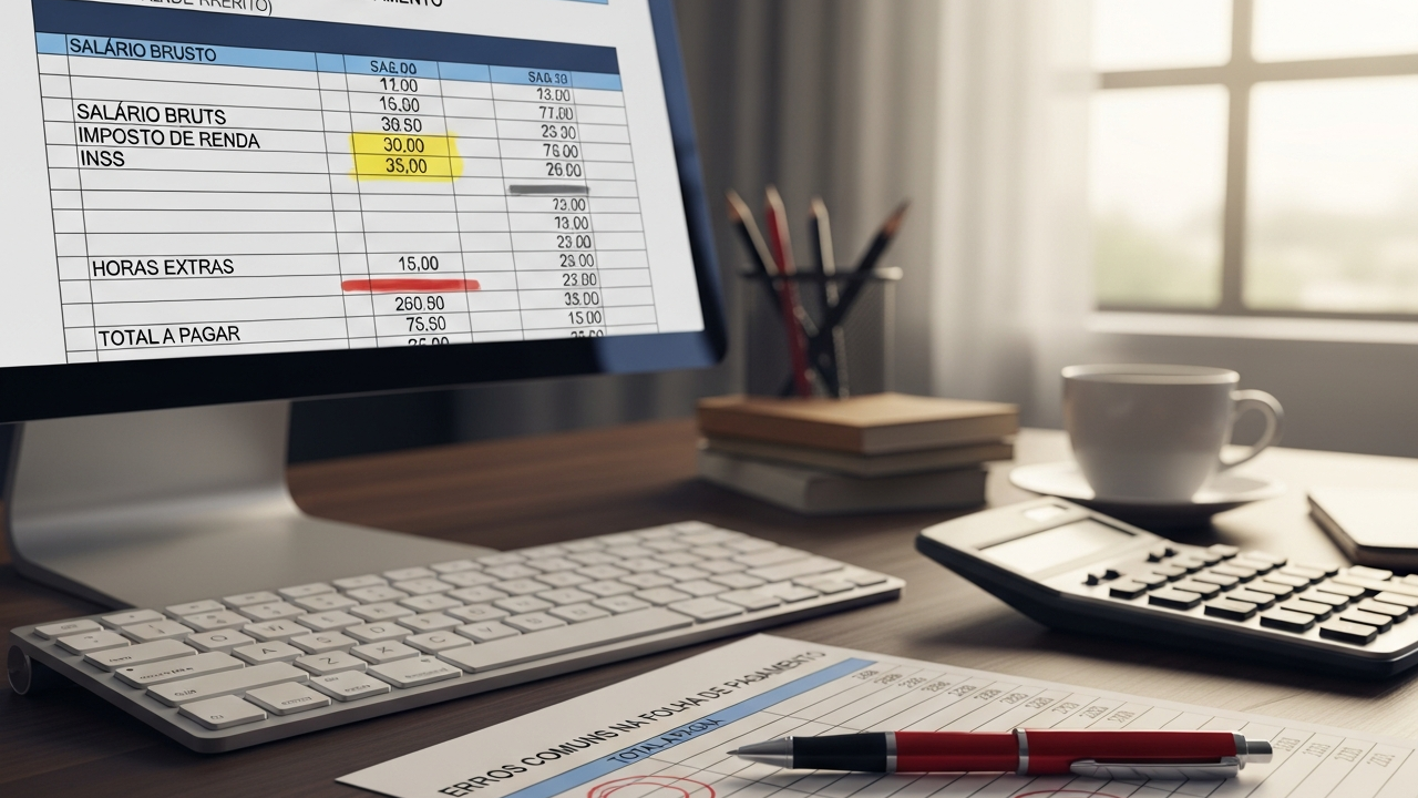 Erros comuns na folha de pagamento envolvem falhas em horas extras, INSS, FGTS e benefícios. Com conferência do contracheque e base legal, é possível identificar e corrigir inconsistências administrativamente.