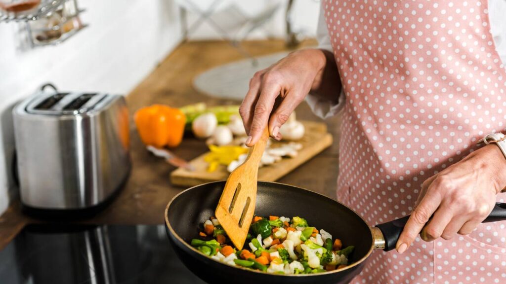 - Sauté rápido: refogar legumes em pouco óleo por minutos preserva sabor e nutrientes. Funciona bem com abobrinha, pimentão e ervilhas.