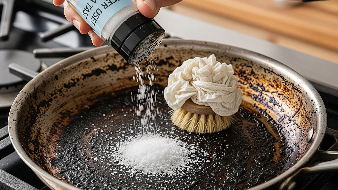 Esfregar sal na frigideira queimada ajuda a soltar resíduos carbonizados por abrasão leve, reduz o uso de produtos químicos e preserva utensílios de inox ou ferro quando aplicado corretamente.