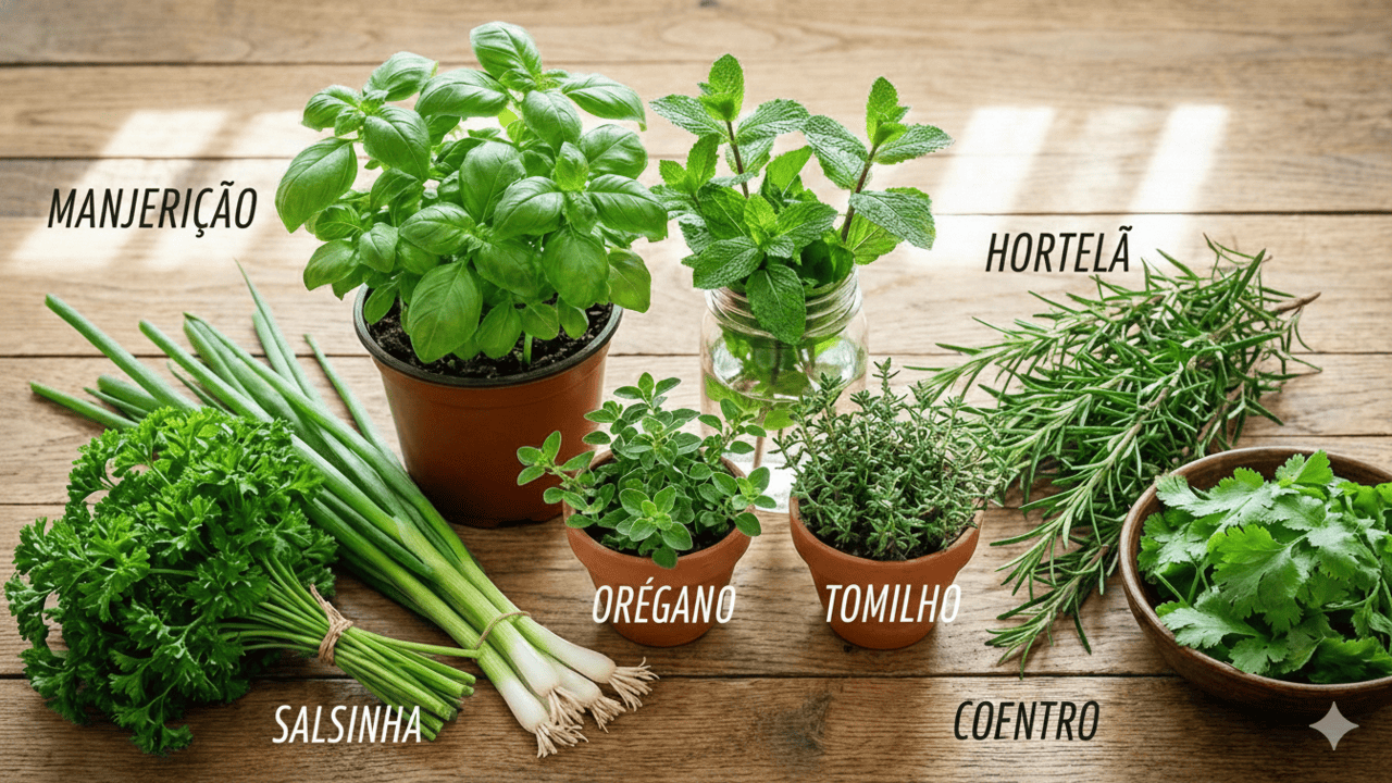 Quando a temperatura sobe, hortelã, manjericão, coentro, salsinha, alecrim e cebolinha tendem a aparecer mais nas receitas. Usadas frescas, elas ficam mais suaves, perfumadas e ajudam a deixar as refeições menos pesadas, algo essencial quando o calor já está intenso.