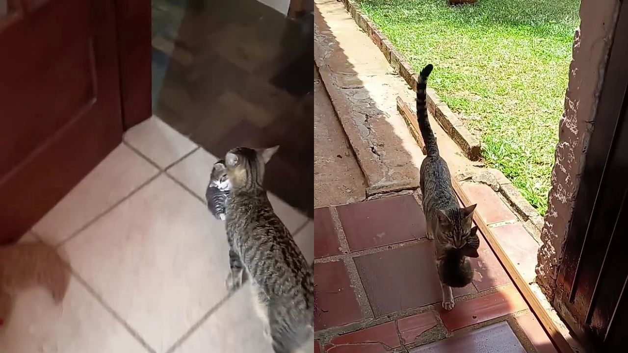 Com essa confiança estabelecida, é provável que Mimi tenha associado o local à proteção para a ninhada, o que explica a decisão de atravessar os muros com cada filhote. Casos semelhantes são relatados por veterinários e protetores, mostrando que gatas costumam escolher ambientes calmos, com acesso regular a alimento, abrigo e presença humana amigável para cuidar de seus filhotes.