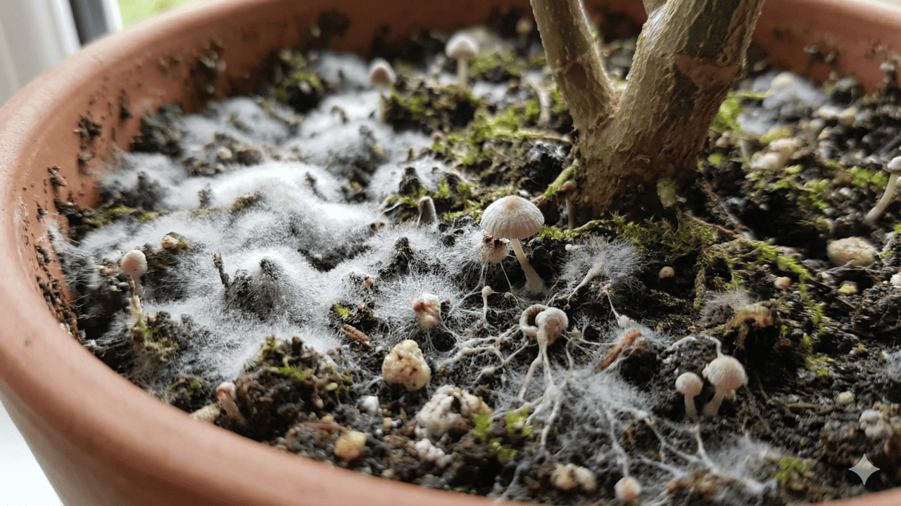 A infestação de fungos no solo de vasos ocorre quando colônias fúngicas se desenvolvem em excesso no substrato, na superfície ou entre as raízes. Em pequenas quantidades, muitos fungos fazem parte da vida do solo, participam da decomposição de matéria orgânica e podem até formar associações benéficas com as raízes.