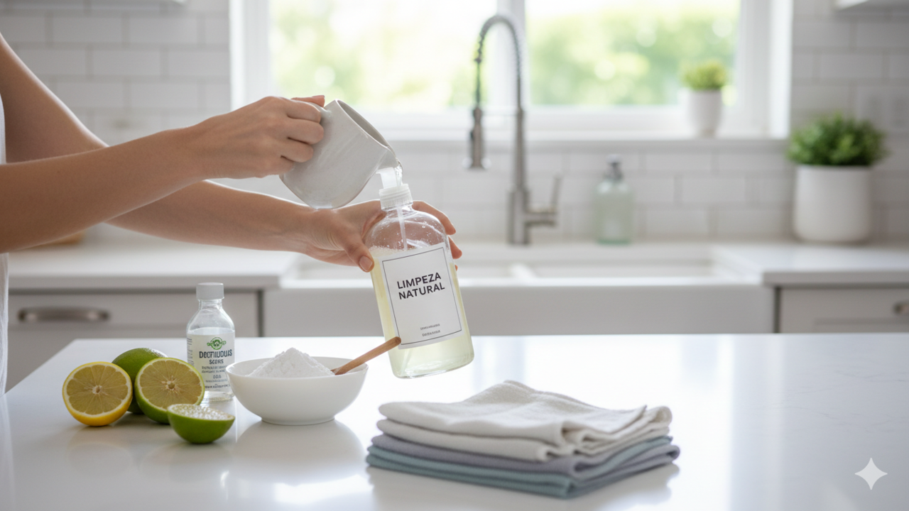 Limpeza prática em casa: receita com vinagre, bicarbonato e limão substitui três produtos, reduz gastos e higieniza superfícies comuns.