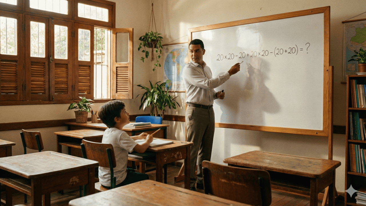 Ao lidar com uma expressão como 20 x 20 – 20 + 20 x 20 – (20 + 20), o foco está menos no resultado imediato e mais em como a pessoa aplica corretamente a ordem das operações.