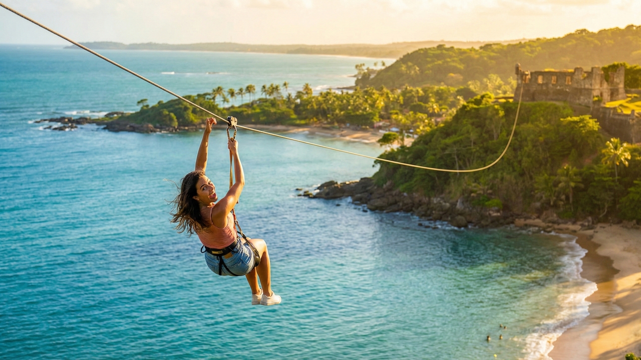 A maior tirolesa com queda para o mar do mundo está localizada no Farol de Morro de São Paulo, com 57 metros de altura. O trajeto de 340 metros termina nas águas da Primeira Praia, oferecendo uma perspectiva aérea única da Costa do Dendê.