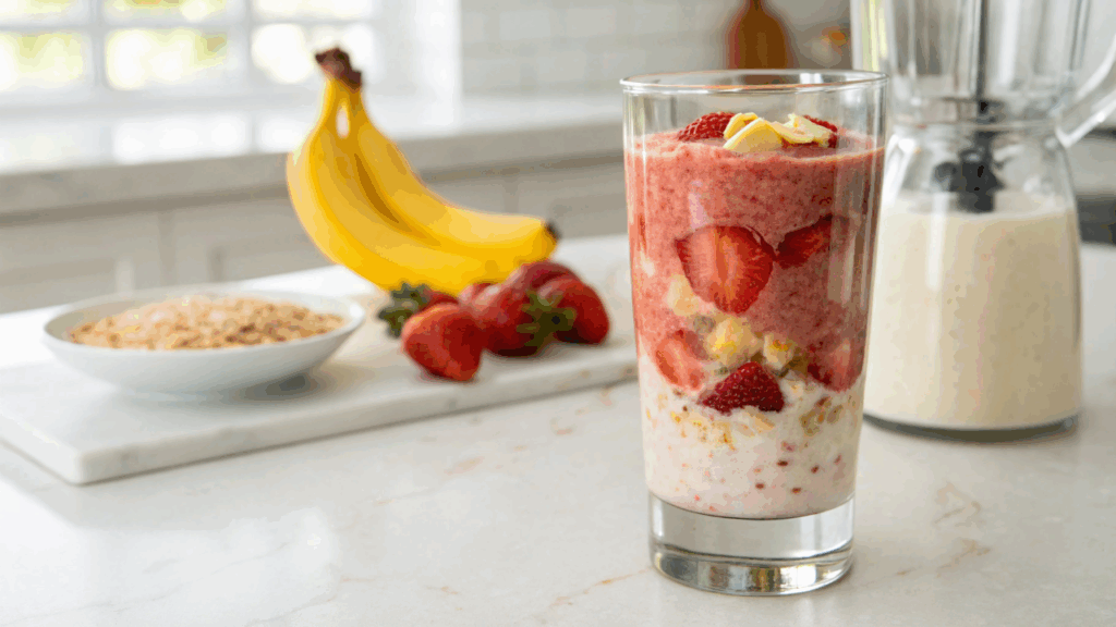 A vitamina de frutas com aveia reúne três pilares essenciais da nutrição matinal: energia, saciedade e micronutrientes.