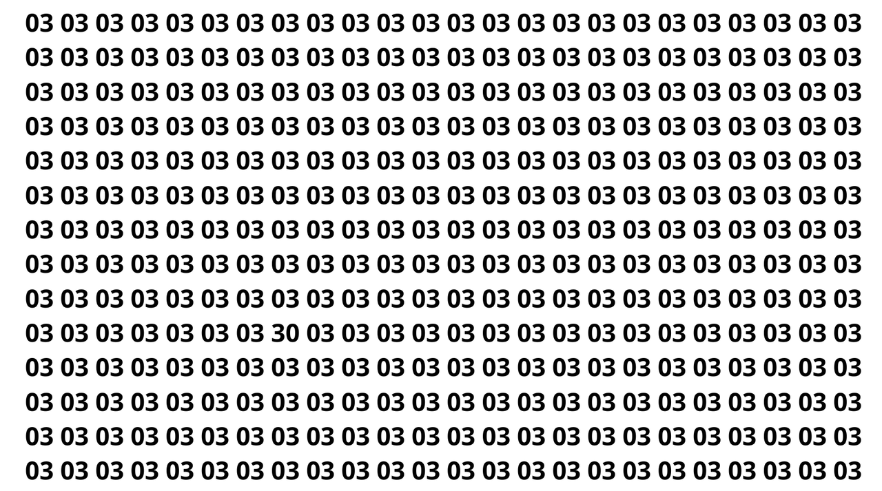 Quem chegou até aqui provavelmente já tentou localizar o número 30 entre tantos “03”. O número escondido está em uma das linhas centrais, levemente deslocado para a direita, inserido em uma sequência contínua de “03” que engana a leitura corrida e passa despercebido para quem olha rápido demais.