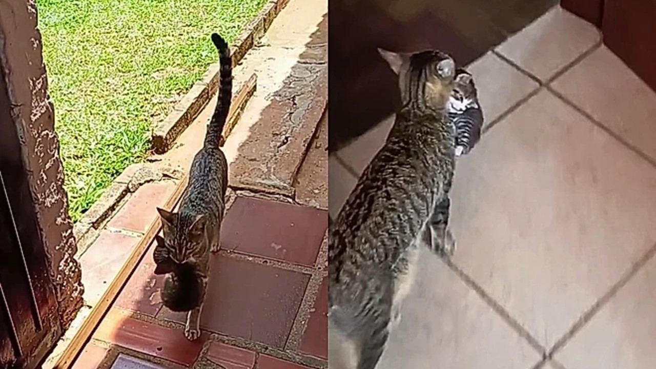 Nas imagens registradas no dia 30 de novembro, a gata aparece percorrendo a vizinhança carregando cada um dos filhotes pela boca. Antes disso, a jornalista havia voltado da casa dos pais com a gata sem os filhotes, mas Mimi logo mostrou inquietação.